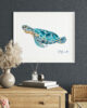 Illustration of sea turtle, painted in watercolor and reproduced by hand.