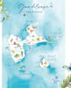 Each illustration on this map was hand-painted in watercolor before being digitized to create this map of certain elements of Guadeloupe.