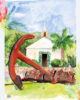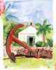 Illustration de l’Église Anglicane de Gustavia à Saint-Barthélemy peinte à l’aquarelle avec une technique mixte et reproduite artisanalement inspirée d’une photographie de Florence Greaux que je remercie tout particulièrement.