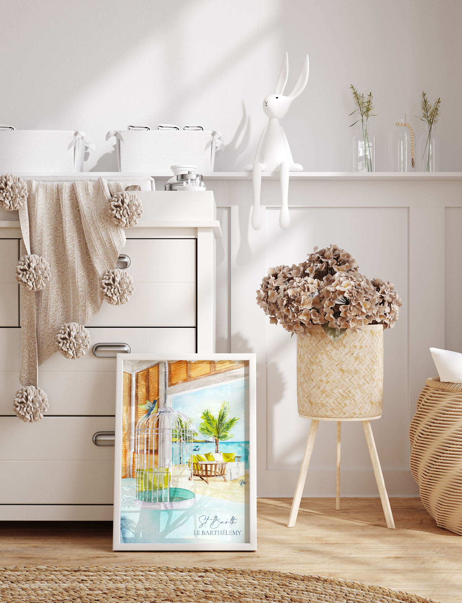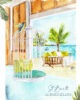 Illustration du Barthélemy Hotel & Spa peinte à l’aquarelle avec une technique mixte et reproduite artisanalement par Moon St Barth.