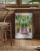 Illustration de l’Hôtel Fouquet’s Saint-Barth à Saint-Barthélemy peinte à l’aquarelle avec une technique mixte et reproduite artisanalement.